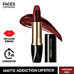 Faces Canada Matte Addiction Lipstick - HD Luxe Finish, Long Stay, Smudge-Proof, 3.7 g Vintage Red 08