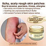 Best Natural Face & Body Butter for Sensitive Skin with skin clarifying Neem anti-ageing Turmeric, plant-based non-comedogenic soothing, plumping, moisturizing Malabar Kokum (like Shea Butter, Cocoa Butter) for acne-prone, rough, itchy skin, fine lines, wrinkles.