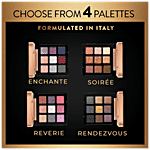 Rendezvous is a palette of smoky mattes, gold foil and creamy metallics. Top row: L to R: Metallic rose brown, Metallic brown, Metallic purple Middle row: L to R: Pale metallic bronze, Gold foil, Matte brown Bottom row: L to R: Metallic gunmetal green, Matte dark-blue grey, Matte black It is also PETA Approved cruelty-free and vegan. They gleam and glow, sleek like liquid metal and smooth like cream—perfect companions for a night in town or a glamorous day out.