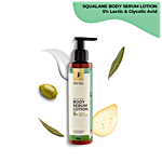 The Squalane Body Serum Lotion with 5% Lactic & Glycolic Acid is a great choice, especially if you want a moisturising body serum that also exfoliates. The 5% blend of Lactic and Glycolic acid, both alpha-hydroxy acids (AHAs), is a perfectly crafted chemical exfoliant that helps to slough off dry, dead skin cells, leaving the skin softer and smoother. No harsh scrubbing is needed! This lightweight body serum also fades away sun spots and softens rough patches on elbows and knees over time, while keeping the skin nicely hydrated. A body serum lotion that refines, retexturises and brightens!