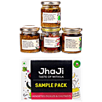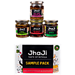 JhaJi Pickles - Mithila Special Mango, Lal Mirch Bharua, Amra, Garlic Ginger Green Chilli, 100 g (Pack of 4)