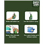 PureCult Multi-use Fabric Refresher Fresh Green Tea gives your fabric a gentle and lasting scent of fresh green tea. Fresh green tea essential oil is known for its anti-fungal properties and skin benefits which are skin-friendly and pet friendly. It also serves as a wrinkle remover as it minimises the static present in fabrics. It’s helpful if your car doesn’t smell like a bus or train. The mystery scents in your leather will be reduced and you’ll be back to feeling fresh with a quick spray of Fabric Refresher like car air Refresher.