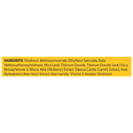 Ethylhexyl Methoxycinnamate, Ethylhexyl Salicylate, Butyl Methoxydibenzoylmethane, Mica (and) Titanium Dioxide, Titanium Dioxide (and) Silica, Benzophenone-3, Morus Alba (Mulberry) Extract, Daucus Carota (Carrot) Extract, Aloe Barbadensis (Aloe Vera) Extract, Niacinamide, Vitamin E Acetate, Panthenol.