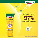 Defend your skin from harmful UV rays with this broad-spectrum, lightweight sunscreen with a non-sticky formula that acts as a shield against tanning, sun damage & blue light. Tan Block Lotion with SPF 50 blocks up to 97% UVB rays that cause sunburns while PA+++ protects from UVA rays that cause premature photo-ageing and skin darkening.