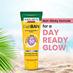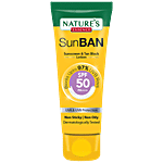 No Question askedNatures Essence SunBan Sunscreen & Tan Block Lotion - SPF 50 PA+++, Non-Sticky Formula