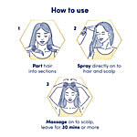 • Lift hair in sections to spray directly onto hair and scalp, evenly covering head.