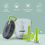 Home Puff Fruit & Vegetable Chopper For Kitchen, 5 Stainless Steel Blades, Unbreakable Plastic, Free Curd/Cream Whipper, Egg Beater, 1 L