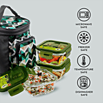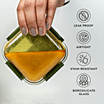 Home Puff Borosilicate Glass Lunch Box is made of high-quality glass. It is durable and long-lasting as it is made with anti-bacterial, non-porous glass. The lunch box contains Square Glass Containers of 320 ml capacity with a premium carry y bag which also has airtight, leak proof lid. The bag makes it easy to carry anywhere. Containers are completely leak proof and microwave safe.