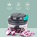 Home Puff Fruit and Vegetable Chopper has 3 sharp stainless-steel blades that cut through vegetables easily. It is made from high quality food grade plastic that is BPA free. This manual food chopper can cut your food preparation time. This chopper is versatile and indispensable kitchen tool. It gives you fine and precision cutting without consuming much time. Its stainless-steel blades can seamlessly cut through hard vegetables easily. It has comfortable handle making it easy to use and it is easy to clean.