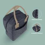 Home Puff Lunch Bag Insulated For Tiffin & Bottle Holder With Durable Beige Handle, Multiple Pockets - For Office, College, Grey