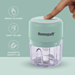Chopping is made easy with this Home Puff Japanese Technology Electric Chopper. It is waterproof and comes with 3 razor-sharp stainless-steel blades and a magnetic safety lock feature for added safety. Can be dismantled and cleaned easily and is made using unbreakable food-grade plastic. This chopper comes with an unbreakable waterproof plastic body, anti-slip base and 3 Durable razor-sharp Sharp blades with One-Touch Press-to-Chop operation for chopping all your ingredients in seconds- vegetables, salad, fruits and more. Charge your chopper on the go with a USB charger! Lightweight, portable, and compact design, perfect for domestic use or while traveling.