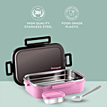 Home Puff Stainless Steel Insulated Lunch Box is a perfect companion for carrying warm and fresh home-cooked meals, this lunch box is made of high-quality 304 Stainless Steel and 100% Non-Toxic Food Grade BPA Free Plastic Materials. It is lightweight, has an unbreakable lid, and comes with a 4-side lock and seal technology. Switch to healthy mode with this Mother’s Choice Home Puff Tiffin Box. It is made with High Quality Durable 304 Stainless Steel and 100% Non-Toxic Food Grade Plastic Materials; this lunch box has an Unbreakable Lid with a 4-side Lock & Seal Technology. This 800ml Airtight Leak-Proof Tiffin Box comes with a side container and a free stainless-steel spoon. This lunch box is lightweight and easy to carry and can easily fit in a school/office bag. It is also good for storage of leftovers and is refrigerator and freezer safe. It is easy to clean and is also top-rack dishwasher safe.