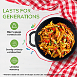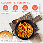 Home Puff Pre-Seasoned Non-Stick Cast Iron Kadai is made from high-grade cast iron, the Homepuff Kadai is strong and durable. Being food-safe & toxin-free, this kadai is a healthier alternative to non-stick cookware that comes with a chemical coating. Since cast iron has natural non-stick properties and retains heat longer, it reduces oil and gas consumption, which makes it good for you and for your pocket too! Sauté, fry or cook your favourite curry with our pre-seasoned Kadai. The sturdy construction, uni-body one-piece design free of any screws or weld joints makes the kadhai durable and sustainable while adding a premium look and feel to your kitchen. With a bit of regular cleaning and seasoning care, this can prove to be a long-term investment and bring you value for decades. Home Puff presents premium non-stick super smooth cast iron kadai ideal for sautéing, deep-frying, preparing curries and gravies and much more. Healthier than other traditional non-stick kadhais as it avoids harmful toxins and chemical coatings, helps fight iron deficiency by leaching iron in the food and boosting the iron levels.