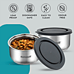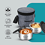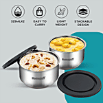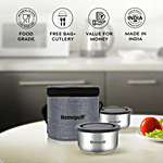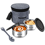 Home Puff Set of 2 Stainless Steel Insulated Lunch Box for School and Office, Spill Proof Tiffin for Men & Women, Unbreakable Lid, Free Bag, Easy to Clean, 320mlX2 is made with High Quality Durable Stainless Steel and 100% Non-Toxic Food Grade Materials. The lunch box has been designed keeping in mind the Indian palette - it is ideal for carrying rice based dishes (Chole-Chawal, Rajma-Chawal), breads-based dishes (rotis with curries, theplas) and single serve meals! This trendy and stylish tiffin comes with a Lunch Jacket and free cutlery set which are easy to wash and clean, the tiffin is leak proof and light in weight which makes easy to carry at office, school, while travelling, camping, picnics. This lunch box is lightweight and easy to carry, and can easily fit in a school/office bag. It is also good for storage of leftovers and is refrigerator and freezer safe. It is easy to clean and is also top-rack dishwasher safe. Spill proof containers keeps food fresh and the insulated Lunch Bag keeps food warm.