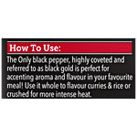 On1y Whole Black Pepper is the perfect way to bring bold and exotic flavours to your cooking. This premium, black pepper has a distinct peppery aroma and full-bodied flavour that will give your dishes an unforgettable kick! The distinctive taste of pepper is a highly coveted culinary experience and this whole black pepper will help you create it in your own kitchen. From sandwiches to biryani, marinades to stews, sprinkle this black gold for added zing and aroma. Use it whole for curries and rice or crushed for marinades – whatever you do with it, this black pepper is sure to take your dishes up a level. Spicy and pungent, Distinct peppery aroma, Bold and exotic flavours, Multipurpose whole spice.