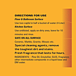 1. Use one capful in a half a bucket of water. 2. Mix the solution in water. 3. Gently mop the surface.