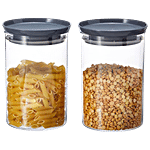 YouBee Plastic Kitchen Storage Container - Air-Tight, Transparent, Stackable, Grey Lid, 900 ml (Set of 2)