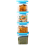 YouBee Plastic Kitchen Storage Container - Air-Tight, Transparent, Stackable, Blue Lid