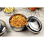 Omega Stainless Steel Round Puri Dabba is made with pure stainless steel. It is unpolished and 100% natural. It is made from the finest stainless steel material which ensures strength, quality, and durability. This attractive mirror finishes flat canister can use to store Puris, Rotis, Parathas, Snacks, Khakhara, mukhwas, dry fruits, chocolates, biscuits, etc. This flat storage container is rustproof and hygienic. It is Easy to clean and all are dishwasher safe. When not in use a smaller container can be stacked inside bigger containers saving a lot of storage space.
