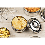 Omega Stainless Steel Round Belly Shape Puri Dabba is made with pure stainless steel. It is unpolished and 100% natural. It is made from the finest stainless steel material which ensures strength, quality and durability. This attractive mirror-finish container can use to store Puris, Rotis, Parathas, Snacks, Khakhara, mukhwas, dry fruits, chocolates, biscuits, etc. This container is rustproof and hygienic. It is easy to clean and all are dishwasher safe.