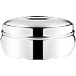 Omega Stainless Steel Round Belly Shape Puri Dabba is made with pure stainless steel. It is unpolished and 100% natural. It is made from the finest stainless steel material which ensures strength, quality and durability. This attractive mirror-finish container can use to store Puris, Rotis, Parathas, Snacks, Khakhara, mukhwas, dry fruits, chocolates, biscuits, etc. This container is rustproof and hygienic. It is easy to clean and all are dishwasher safe.