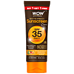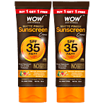 hield your skin from daily sun exposure with WOW Skin Science Sunscreen SPF 35. This natural sunblock gives your skin broad-spectrum protection from harmful UVA & UVB rays and pollutants as well. Infused with the goodness of raspberry extract, avocado oil, carrot seed extract and vitamin E. The active ingredients rich in vitamins A, C and E prevent skin damage by neutralizing free radicals and UV rays. It helps to protect the skin from photodamage and excessive dryness caused by sun exposure. It helps to keep your skin hydrated and supports repairing the skin’s lipid and moisture barrier. Protects skin from dehydration and diminishes wrinkles and brown spots. This sunscreen helps to protect your skin not just from sun damage, but also keeps it safe from harmful chemicals as it is without any benzophenone and oxide colour. It is a lightweight formulation that is non-greasy and you don’t have to worry about whitish, chalky skin because it has a non-streaky and non-chalky texture that does not weigh down your skin. It spreads evenly and dries quickly without clogging your pores to form a transparent film that shields your skin. It is infused with high concentrations of skin-nourishing natural actives. Raspberry Extract is rich in vitamin C, with natural sun blockers that prevent, and repair skin damage caused by the sun. Carrot Seed Extract has vitamins A and E that help to keep photodamage in check and diminish signs of ageing. Avocado Oil has mono-unsaturated fats that deliver natural sunscreen benefits and protects skin from getting tanned. Vitamin E is a powerful antioxidant that neutralizes free radicals and helps to repair damaged skin.