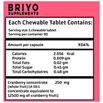Briyo Cranberry Concentrate Chewable Tablets - 12500 mg, Berry Flavour, For Urinary Tract Health, 90 pcs