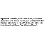 Fresh Milk, Fresh Cream/Butter, Condensed/Evaporated Milk, Refined Sugar/Liquid Glucose, And Permitted Stabilisers And Emulsifiers (E412, E471, E407, E491-E495) With Fresh Mango Fruit, Mango Pulp (Alphonso Mango).