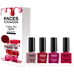 Going, going, gone! For those who live on the fashion fast lane, these mini nail enamels provide unbeatable full colours and smooth application. Colours are one thing that brightens up your mood anytime, anywhere. Match the colours as per your dress, occasion, mood or style. These are high-performing nail enamels that are quick-drying and lend a long-lasting finish. The chip defiant formula makes them even more unique. The multifold shades are inspired by the latest trends. This Splash Mini Combo is a Pack of 4 with beautiful shades; Floral Dream, Royal Ruby, Cherry Blast and Watermelon.