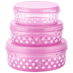 Joyo Plastics Printed Polka Food Keeper Container is a multipurpose storage container that has an elegant modern design. It is entirely safe to use with your food and beverage. This jar is highly durable and made to last long. It is highly durable and stable. The container has an air-tight seal which completely locks the crunch and flavour of the ingredients you keep as moisture is not lost. It is well-designed and crafted for your home or for a classy gift. It comes in a set of 3 with an easy-to-operate lid.