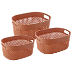 Joyo Filo Basket - Oval, No. 2, 3, 4, Plastic, High Quality, Organiser, Brown, 3 pcs