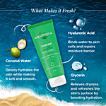 Cleanse, refresh and revive your skin with a splash of hydration! Experience superior cleansing action, formulated with the fusion of best skin hydration like coconut water and hyaluronic acid. Aqualogica hydrate+ face wash is a gentle cleanser that draws out impurities and excess oil for a glowing and healthy-looking complexion. With every application, the fine gel texture of the face wash purifies your skin from the inside out and elevates hydration levels. The result? Skin that feels fresh and rejuvenated after every wash! Aqualogica hydrate+ face wash is ph-balanced, non-comedogenic, soap-free, and hypoallergenic.