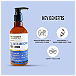 Dr. Sheth’s Tea Tree & Lactic Acid Body Lotion is a non-sticky, 2-in-1 formula that not only moisturises but exfoliates bumpy skin texture & evens out skin tone. Crafted with a blend of AHAs & BHAs like Lactic Acid & Salicylic Acid, this lotion can be used daily to slough off dead cells, treat Keratosis Pilaris (Strawberry Legs) & renew softer skin. Tea Tree Oil & Liquorice Extract prevents acne & moisturizes deeply to calm the skin.