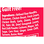 Refined Flour Noodles, Tomatoes, Chicken Breast, Fresh Cream, Chicken Broth, Garlic, Onions, Refined Oil, Palm Oil, Dried Fenugreek Leaves, Red Chilli Powder, Cashews, Magaz, Salt, Sugar, Corn Flour, Ginger, Green Chilli, Turmeric, Butter, Water