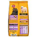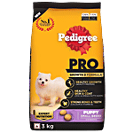 The Pedigree PRO range of premium dog food containing Growth 3 formula is specially designed as per the needs of your small breed puppy (age 2-9 months) to ensure it lives at its happiest and healthiest best. Pedigree Pro dog food is developed with veterinarians and nutritionists at Waltham Petcare Science Institute, a world-leading authority on pet care and nutrition. Formulated with superior ingredients, high protein, and an adapted kibble size, this dry dog food provides the expert nutrition just right for the age of your dog. Pedigree PRO Puppy small-breed dog food is packed with the goodness of high-quality ingredients to take care of the special needs of your puppy. Quality protein helps support growth to their genetic potential, zinc & fatty omega acids help support healthy skin & coat, and calcium & vitamin D are good for bones and teeth.