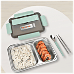 Tedemei Lunch Box - Stainless Steel Interior, 2 Compartment, Green, 800 ml