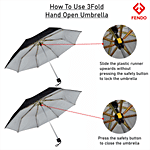 Fendo Aura 3 Fold Umbrella - Hand Open, 55 cm, Black, 1 pc