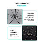 Destinio 3 fold UV Coated Umbrella is made of tough polyester fabric that is UV Coated making it completely waterproof and sunproof. It is light in weight and has a packable design which makes it easy to carry and pack. Classic rainwear that keeps you dry and comfortable even in a downpour. The travel umbrella is formed of UV-resistant material which will block UV rays and protect you from the strong sunlight. Irrespective of what the weather is like it is employed to shield them from the sun and rain.