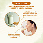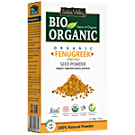 Indus Valley BIO Organic Fenugreek Powder is made from 100% Natural fresh crop. The triple sifted microfine powder is 100% pure and contains no added chemicals. Methi seeds are extremely effective against hair fall, dandruff and help to reverse baldness and hair thinning. Application on hair in the form of a paste, fenugreek can be the ultimate solution for all hair-related problems. Fenugreek seeds or Methi contains proteins and nicotinic acid which are a major source for hair growth. It contains substantial amounts of lecithin which makes our hair healthy and strong and hydrates the hair. It helps to reduce the dryness of the hair, cures dandruff, conditions the hair, keeps the scalp cool and treats a variety of scalp issues. It is highly effective against hair fall and provides strength from the roots.