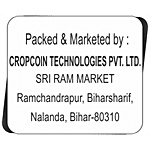 Manufactured Name & Marketed By Sri Ram Market, Ramchandrapur, Bihar Sharif, Nalanda (Bihar)- 803101.Marketed by: Cropcoin Technologies Pvt Ltd, Sri Ram Market, Ramchandrapur, Bihar Sharif, Nalanda(Bihar)-803101 Fssai: 10423010000029