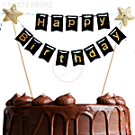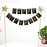 Party Propz Happy Birthday Black Cake Topper With Golden Glitter Alphabets