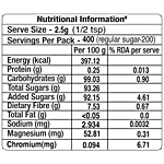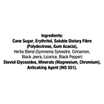Cane Sugar, Erythritol, Soluble Dietary Fibre, Herbs Blend, Steviol Glycosides, Minerals Anticaking Agent (INS 551).