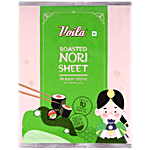 Wrap your rice cakes in the delectable embrace of marine plant life, with Voila Dae Chun Gim Roasted Sushi Nori Sheet! 10 sheets of seaweed (nori) to give you just a peek of all the wonders you can make with this authentic ingredient. Seaweed has a mild and slightly sweet taste with a subtle oceanic flavour. These sheets can be used to wrap sushi rolls, as well as to garnish soups and salads. They can also be toasted and crumbled to add a crunchy texture to dishes. They're also rich in vitamins and minerals such as iodine, iron, and calcium. A reliable source of protein and dietary Fibre as well. Iodine is essential for thyroid function and can help regulate metabolism. Nori also helps reduce inflammation and protects against cell damage. With this healthy pack and roasted chewy flavour, you simply could not resist. Indulge in Voila's wide range of authentic foods available on Big Basket, such as our collection of artisanal Cheeses like Gruyere and Farmhouse Cheddar, or our Silken Tofu.