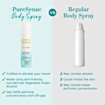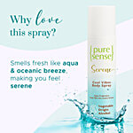 Add this to your everyday routine and envelope your senses in this fresh, citrusy, and musky fragrance of PureSense Serene Cool Vibes Body Spray. This long-lasting aluminium-free, no-gas deodorant is fresh, citrusy & musky. Its serene blend of aroma will relax you and remind you of that cool ocean breeze on a warm, hot day. This women's body spray not only elevates your mood but also takes you back to the beautiful breeze of the ocean. This is your go-to fragrance when you desire to feel calm & relaxed. This warm yet delicate fragrance is sure to delight your senses. That is not all, this luxurious body spray is long-lasting and is an instant mood changer. Made consciously, without any harmful chemicals like sulphates & parabens, this PureSense Serene Cool Vibes Body Spray is gentle on your skin and pure above it all. This body spray is not tested on animals and is cruelty-free. Mesmerize yourself with its warm scent as often as desired to smell divine and pure.
