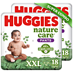 Secure the perfect, leak-proof fit for your little one while they're embraced in the comfort of Huggies Nature Care Pants for Babies. With this Double XL size, you can ensure more coverage and absorbency for active toddlers and take a breather from all the changing! In this double-pack combo, your inventory will never run out - and we all know how important it is to not run out of diapers. One of the key benefits of our diaper pants is their secure fit, which ensures that they stay in place even as your baby moves around. This means that you as guardians don't have to worry about leaks or uncomfortable chafing.
