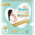 Experience 5-Star comfort with unique added features like Wetness Indicator which turns Yellow to Blue indicating when you may change the diaper and a Disposal Tape to help you with easy disposal. Pampers Premium Pants are available in Newborn (NB), S, M, L, XL and XXL sizes.