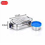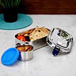 PddFalcon Stainless Steel Recta Munchy Tiffin Box - 2 In 1, Silver & Blue, 2 pcs (1 Container - 700 ml + 1 Mini Container 125 ml)