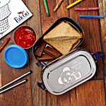No Question askedPddFalcon Stainless Steel Recta Munchy Tiffin Box - 2 In 1, Silver & Blue