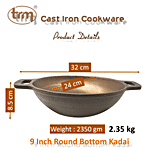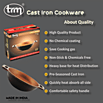 About Quality: Pre-seasoned naturally with cold-pressed organic Gingelly oil. Thick and Heavy Cooking base that Spreads Heat evenly across the kadai mainly retaining food nutrients. Heirloom Quality cast iron that lasts for generations. Designed developed and manufactured in INDIA with INDIAN cooking needs in mind. High-Grade Cast Iron is Manufactured through controlled metallurgy and quality controlled with the latest technology. Finished smoothly to give a non-stick easy release surface and looks good in your kitchen set.