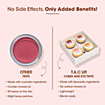T.A.C Lip, Cheek & Eye Tint is an ayurvedic blend of potent herbs and fruit extracts that brings extra pouty lips, blushing cheeks and a monochromatic look to your eyes. The long-wear lip & cheek tint stays for long, keeping your lip moisturised and nourished. The lightweight and creamy formula of ayurvedic lip tint for women and men glide effortlessly and does not irritate skin. It is easy to use; simply apply it to your lips and cheeks and blend it with a brush or finger to give yourself a bold and classy look. Pretty handy lip & cheek tint feels so light and natural on skin compared to regular tints. Available in different poppy shades like Retro Red Plum, Beet Mighty Pink, Satsuma Orange and Peach Nude Pink, the lip tint set adds a beautiful touch to your lips and cheeks.